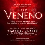 | Breve sinopsis: | El Hombre Veneno es una farsa para adultos donde un monólogo encarna en dos cuerpos —ella y él— que alternan la caída en una pasión adictiva. Humor ácido, confesión sin pudor y un sillón de piel donde ocurre TODO. Una experiencia escénica sobre el placer, el poder… y sus consecuencias. |