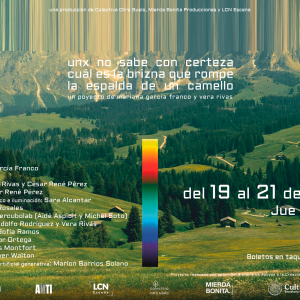 Breve sinopsis: Unx no sabe con certeza cuál es la brizna que rompe la espalda de un camello es un ensayo escénico interdisciplinar en forma de conferencia performática creado por Mariana García Franco y Vera Rivas junto con un equipo de creadores con lenguajes diversos. La pieza indaga cómo las narrativas hegemónicas se instalan en nuestras maneras de habitar el mundo y moldean el deseo, y la memoria. En escena, una mesa con dispositivos, una pantalla, inteligencia artificial y un cuerpo exponen imágenes que manipulan, comparan o abren otros caminos.