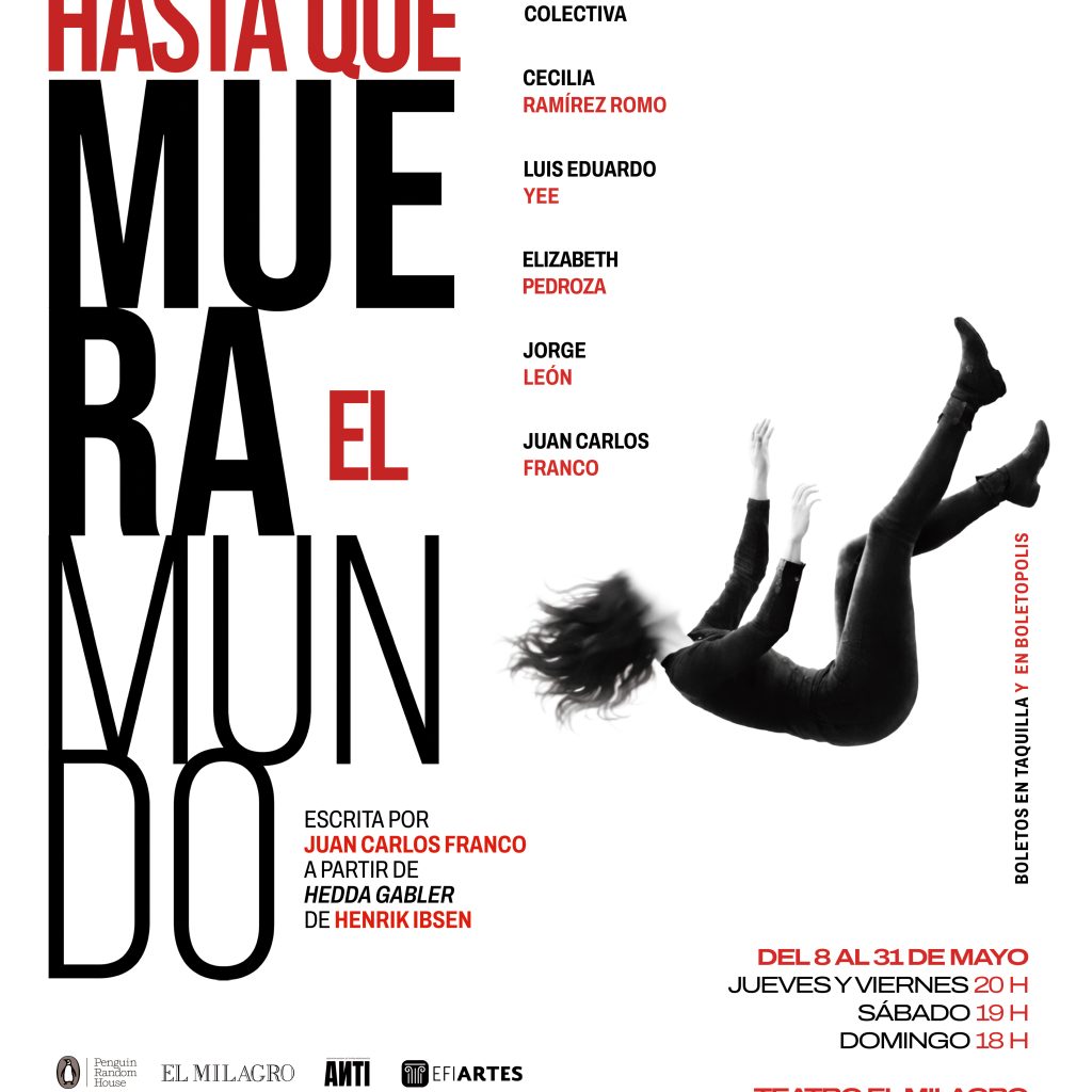 Hasta que muera el mundo ofrecerá temporada en el Teatro El Milagro, del 8 al 31 de mayo, los jueves y viernes a las 20:00 h, sábados a las 19:00 y domingos a las 18:00 h.
